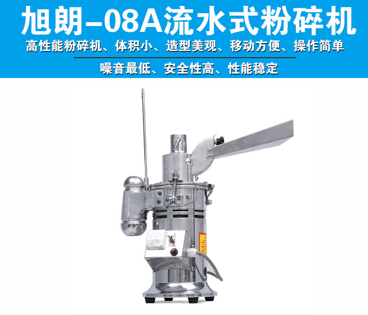 HK-08A落地流水式粉碎机又名高性能粉碎机、体积小、造型美观、移动方便、操作简单,特殊构架运转无振动、