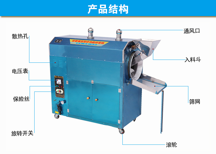 5.在炒的过程中,所炒物料在滚筒内立体翻炒不粘锅。