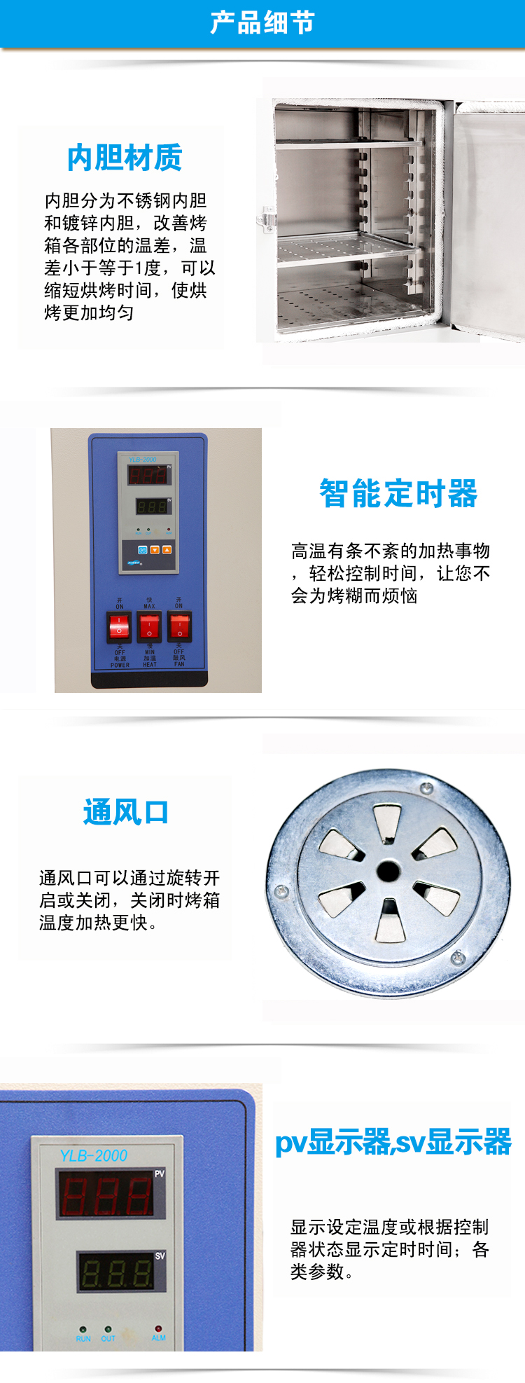 孔流进,经发热丝加热再经鼓风装置流入工作室,再由箱顶排气孔排出。本品工作室与外壳之间有玻璃纤维做保