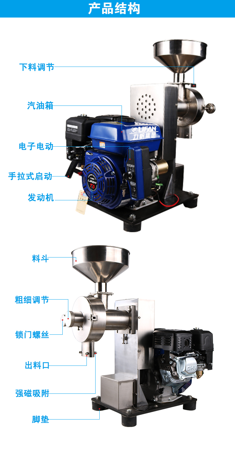 三亿在线(中国)唯一官方网站汽油磨粉机工厂直供价:3600元 广州市三亿在线(中国)唯一官方网站机械通过质量监督检验合格产品,本机上市以来客户操作使用上所发现的一些实际问题, 我司组织研发、技术队伍在设计、材质、性能、外观,进行反复试验,多次改进、改良,不断提高机器零配件 加工工艺,不断改善机器装配工艺流程,基本保持1.5—2年对产品更新换代一次,目前在市场上的主打产品为 第三代机型,真正、彻底解决磨粉不够细腻、卡机、产量低、噪音大等其他公司同类设备的通病,确保进出料 顺畅,噪音小,使机器能满足多数客户的使用需求。 2012年7月,三亿在线(中国)唯一官方网站机械为满足流动作业经营者的使用要求,研发制造了汽油机磨粉机,即“汽油发动机 +磨粉机”,不需连接电源,通过汽油发动机传动,适合流动式磨粉作业。本机可通过控制发动机油门的大小, 调节转速。 ![]() ![]() 我公司对配件的选用一直坚持更优、更好的原则,坚决杜绝劣质、低价的配件。本机整机(含汽油机)均保修一年。 我公司是生产厂家,相对于其他贸易商或者网店,我公司有强大的技术、人员保障和完善周到的售后服务体系,为 广大客户提供最优质的产品和终身的维修售后服务,解除客户的后顾之忧:保修期内属于质量问题,公司免费提供 配件和维修服务;超出保修期限或保修范围,公司也仅收取配件成本费。 ![]() 主要性能特点: 1、机身由304不锈钢铸造和精密加工而成,美观大方、不生锈,符合GMP要求。 2、更加卫生: (1)加装了4个强磁,吸附机器运转过程中磨片磨损的铁粉,干净卫生; (2)机器磨粉腔内不用涂抹润滑油(脂),不会对所加工物料造成污染,保证了食品、药物的安全卫生。 3、提高了机器零配件加工工艺,改进了机器装配流程,噪音低、进料通畅、下料更快、不堵料,磨粉细腻、无粉尘。 4、连续投料式生产,效率高。 5、操作简单方便。 (1)只需要将动磨片套上连轴器,轻轻旋转一下就可以把动磨片安装好。 (2)操作使用机器时,调节磨粉粗细更轻松省力。 (3)磨粉腔内物料余留少。 (4)进料快慢和出料粗细均可调节。 ,特别适用流动作业。加工范围广: (1)各种粮食:芝麻、核桃、大米、黑米、黄豆、绿豆、花生、莲子、玉米、高粱、大麦、荞麦、燕麦等; (2)各种干性药材:杏仁、茯苓、红枣、芡实、枸杞、薏仁、山楂、淮山、首乌、红豆、阿胶、乳香、菟丝子、当归 、党参、黄芪等。 工作原理: 磨粉机靠两块布满齿槽的磨片相对磨动、运转,从而将物料研磨成粉末。 7、友情提示:我司是全国最早开发汽油机的生产厂家,随后一段时间,国内一些小作坊、小型加工厂,先后仿制我司
