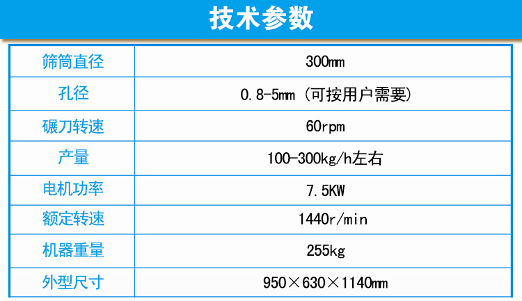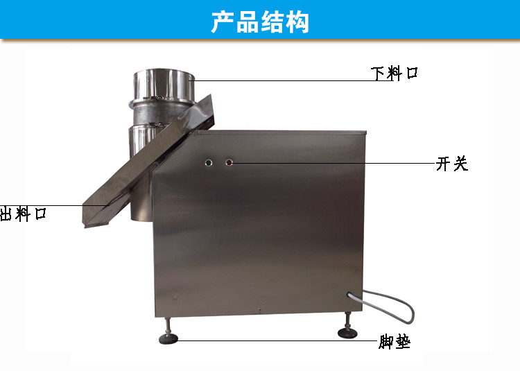的颗粒,亦可用于将已压成块状的干粉粉成颗粒。本机操作简单,维修方便,清洗容易,自动出料。并可根